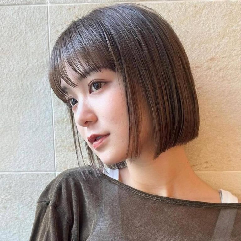 前髪はリップラインに設定し、前上がりにサイドにつなげてカット。えり足はあごラインギリギリまで、表面の段差は顎の延長線上になるようにカットする。髪のクセが強いという人は、ストレートパーマをかけるとスタイリングしやすくなるのでおすすめ。