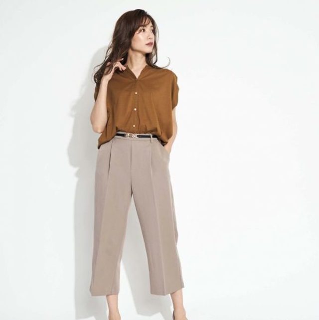 センタープレスのきいたワイドパンツなのでカジュアル過ぎず、ジャケットとの相性も抜群!遊び心をきかせて、ロゴTやスニーカーでハズすとオシャレに決まります♡