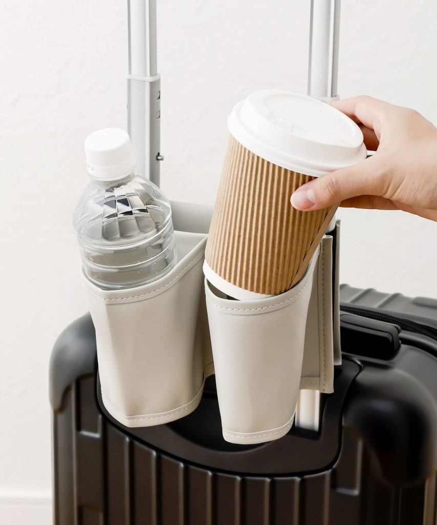 旅行中の荷物が多い時、飲み物を持ち運ぶのは一苦労ですよね。そんな悩みを解決してくれるのが、「キャリーケースドリンクホルダー」です。キャリーケースのハンドルに被せるだけの簡単取り付けで、最大2本のドリンクを収納できます。