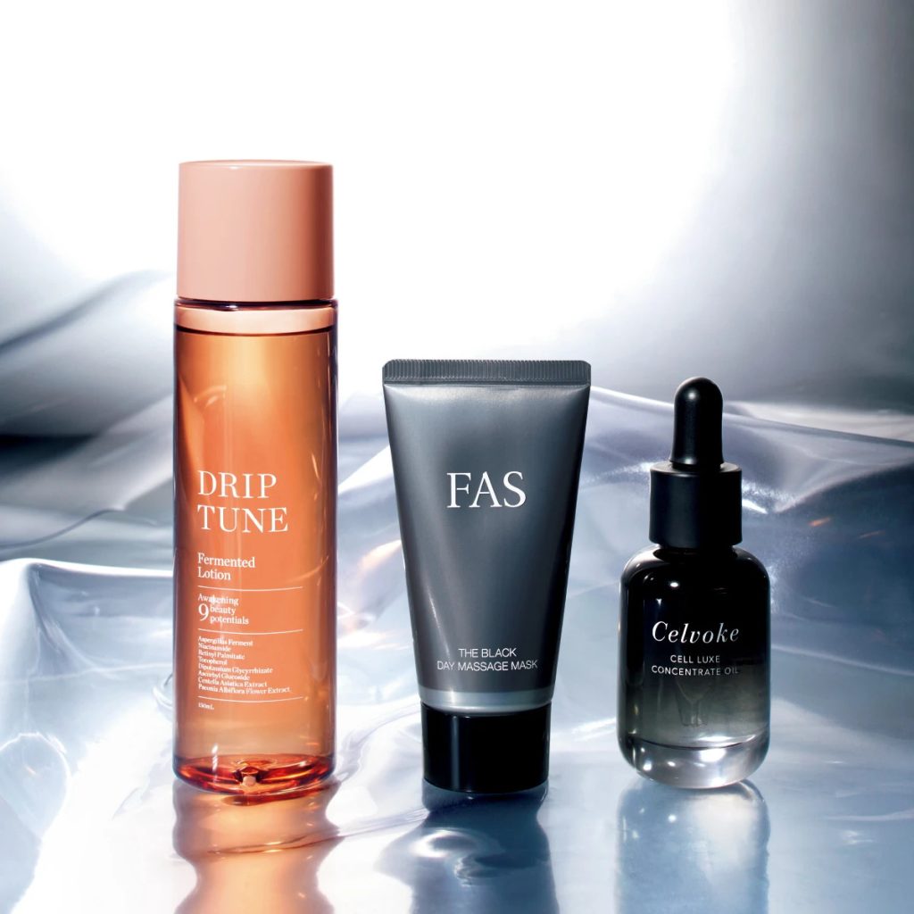 1シグネチャー的存在のスキンケアシリーズ「プレミアムスキン」が「セルリュクス」としてパワーアップ。発酵×低温熟成の独自製法で生まれた、低熟発酵ツバメの巣-VPを世界で初めて配合した植物美容オイルが、硬くなった肌をほぐし、次に使うスキンケアの浸透を高める。セルリュクス コンセントレートオイル 30ml ¥13200/セルヴォーク2黒米発酵液をはじめ、朝の肌印象を整えるクダモノトケイソウ果実エキスなど、3種のエキスを配合した朝用マスク。日中の乾燥から肌を守り、引き締まった表情に。FAS ザ ブラック デイ マッサージ マスク 50g ¥10010/シロク3スギ薬局と実力派コスメメーカーのカラーズが共同開発する、新たなプライベートブランド「DRIP TUNE」。キー成分となる独自の玄米麹発酵液で透明感のあるむっちり肌へ。ドリップチューン 発酵ローション 150ml ¥1628/スギ薬局