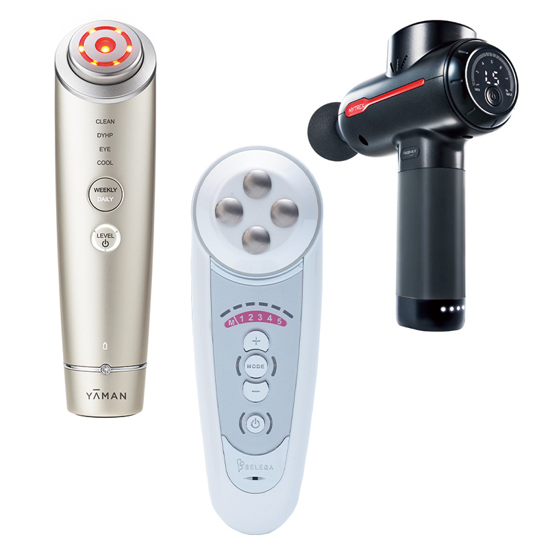 毛穴クレンジング・マイクロカレント・表情筋EMS、ディーポレーションの導入の機能を搭載。これ1台でフェイシャルからボディまで使える上に、業務用並みのパワフルさというバランス感に溺愛者続出。¥180,400(ベレガ)