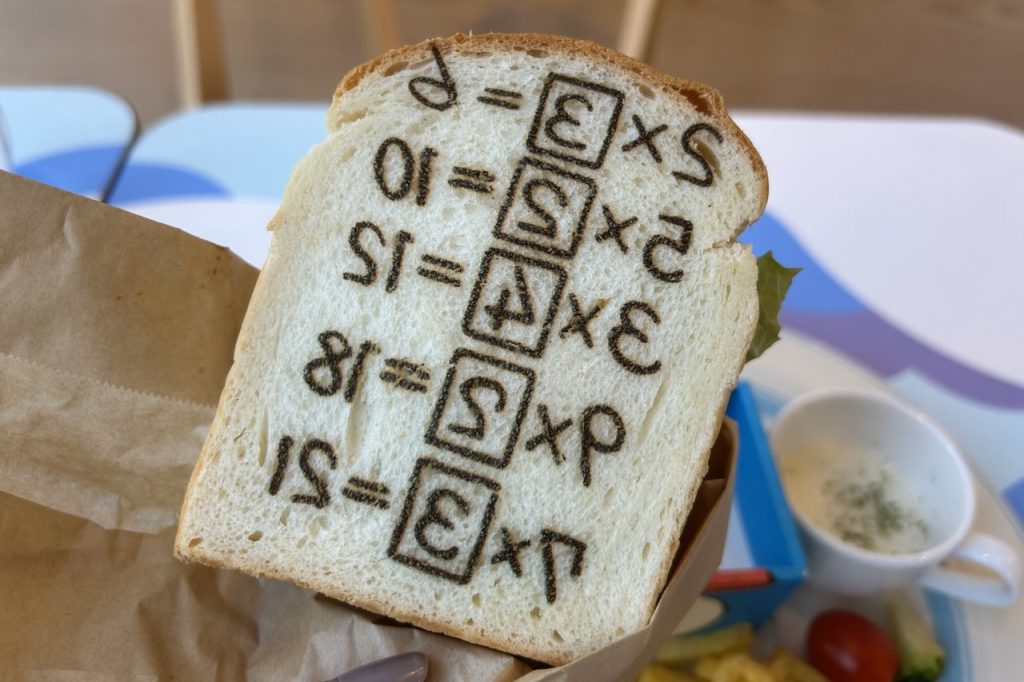 ひみつ道具の一つ“アンキパン”から着想を得た一品で、パンの表面には計算式が焼き印で施されています。数字が反転しているところも、アニメや漫画で見たまんま!