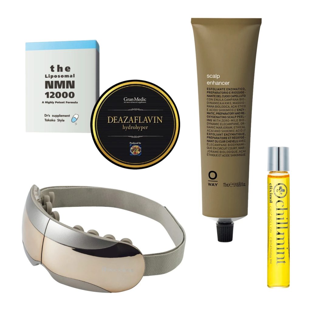 ミトコンドリアを活性化し、細胞のエネルギーを高めることで注目を集めるデアザフラビンとNMNのサプリ。(右)デアザフラビン ハイドロハイパー 20粒 ¥19440/エステプロ・ラボ (左)the Liposomal NMN 12000 60包 ¥86400/TAKAKOスタイル