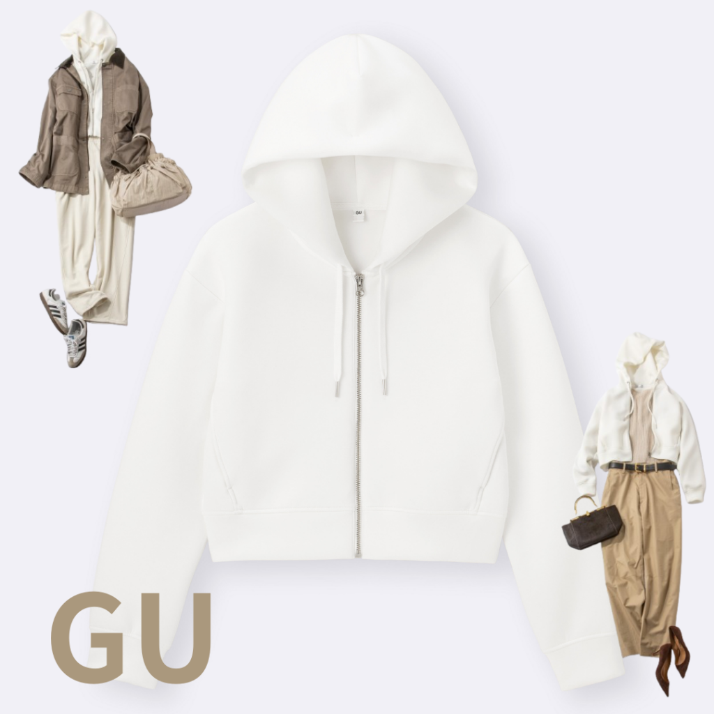 [GU]ダブルフェイスフルジップパーカは30代40代も着られるショート丈
