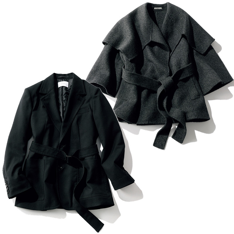 ショールカラーと短丈に旬が香る。