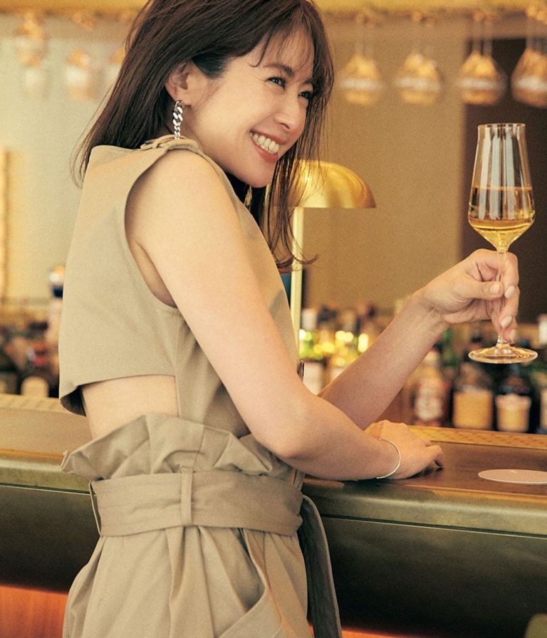 程よい厚みのあるサテン生地を使ったシャツとワンピースをセットアップのように着こなしています。ドット柄のように見えるデザインにはハート柄を採用し、バレンタインをしっかりと意識しています。