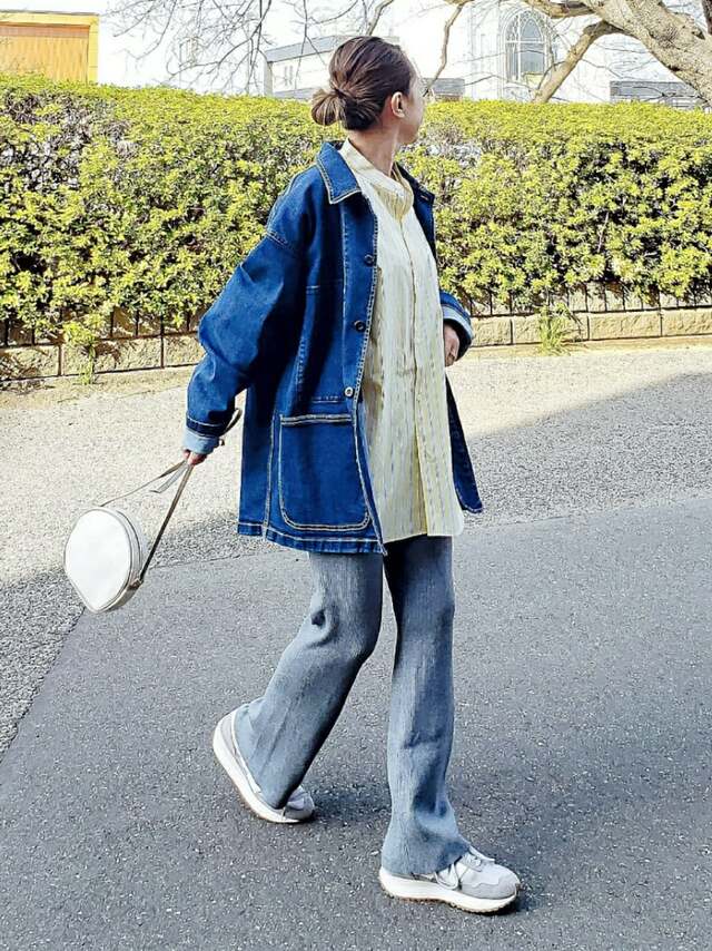 秋冬コーデにたくさん登場したブラウン。少し季節を進めて春っぽくしたいなら、断然スニーカーがベストです。白とブラウンのコンビカラーなら、季節感もアップデートしながら今っぽさもキープできます。白のデニムやベージュのワントーンコーデで、さりげなくトレンドカラーを取り入れて。