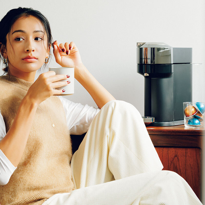 挽きたての美味しいコーヒーが手軽に楽しめると堂々の1位!熟練のバリスタのように細かな抽出設定を自動で調整。やわらかなクレマ(泡)がのった本格コーヒーを味わえる。ヴァーチュオ ネクスト デラックス ¥27,500(ネスプレッソ)