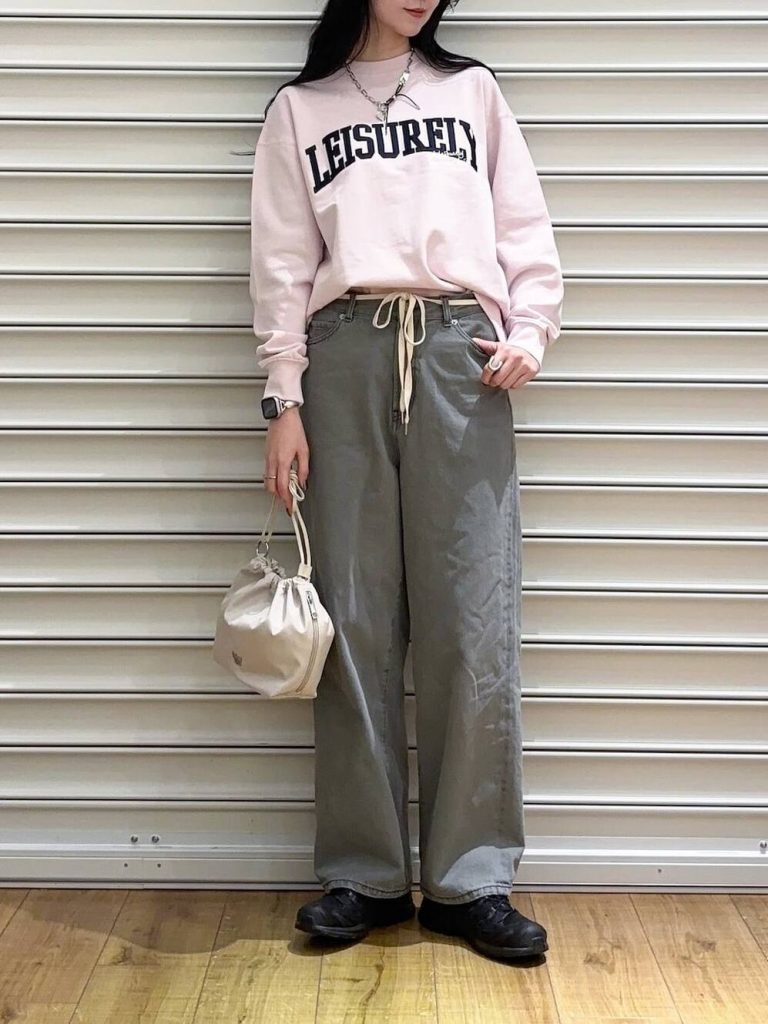 ユニクロやGUからも発売されているスウェットパンツは、春コーデマストハブアイテム。ローリーズファームのスウェットパンツは、股下が64.5cmと短め。ユニクロの丈短めタイプは同じウエストで68cmなので、さらに短く低身長さんに向いています。さらにグレーだけで3色もあるので、こだわった色選びもできますね。