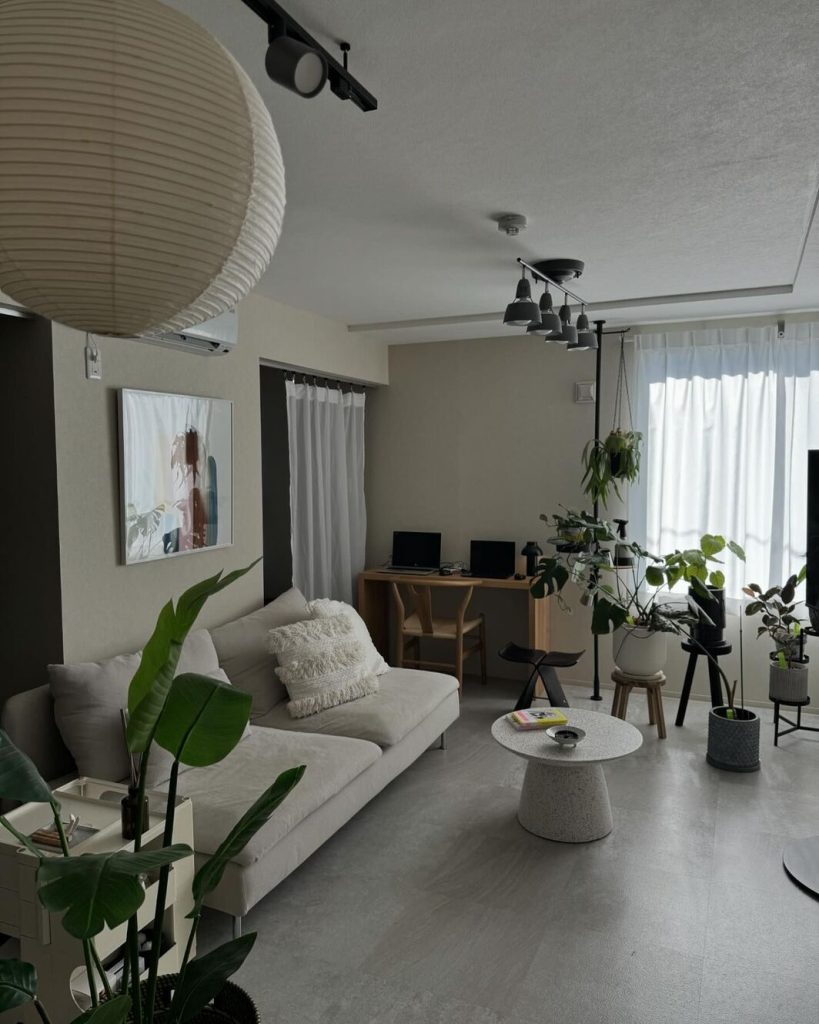 和とアートの雰囲気がある、モダンなリビング。二人暮らしの2LDKインテリア [私らしく暮らす]