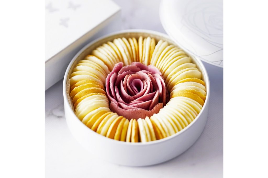今回オープンする新店では、可憐に咲く“バラの花”を再現した代表商品「ラングドシャ リングバニラ」(1,944円)を提供。