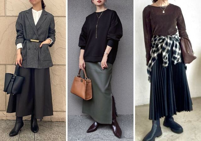 色の組み合わせは①と同じですが、きちんと感溢れるシャツに変えるだけで、グッと洗練された雰囲気に傾きます。そのテイストを崩さないよう、バッグと靴は黒でピリッと引き締めて。シャツのボタンを裾まできちんと留めないことでコーデに奥行きも生まれます。