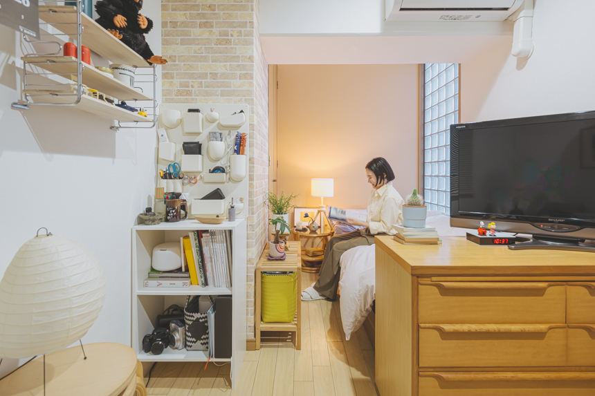 「今回の住まいは、設定した予算をベースにお部屋が広く見えるワンルームをひたすら探して見つけました。決め手はガラスブロックに一目惚れしたのと、立地が駅から近かったこと。スーパーもコンビニも徒歩5分圏内にあるのでとても便利です」