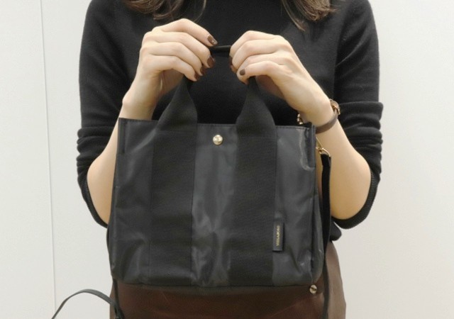 ”SHELL”という名前のとおり、立体的でやわらかく包み込むようなフォルム。さらに、ハンドルにはスライドパーツを使用し軽さを追求した点も特徴的です。ショルダーの長さを調節できるため、肩かけとしてもハンドバッグとしても使えます。