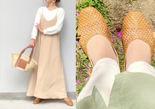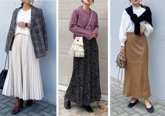 Aラインのスカートが美人見え確実なセットアップです。トップスはサイドにスリットが入っていて前後差もあるため、着るだけでこなれ感も生まれます。ハリ感が特徴的なダンボール素材を使用しているため、高級感もあり大人っぽく仕上がるのが魅力。