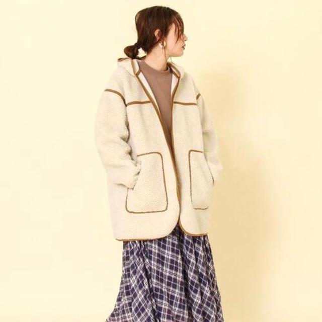 マウンテンパーカーはカラーをそろえてアイボリーをチョイス。少しだけ甘さが控えめになり、大人っぽい表情を引き出せます。