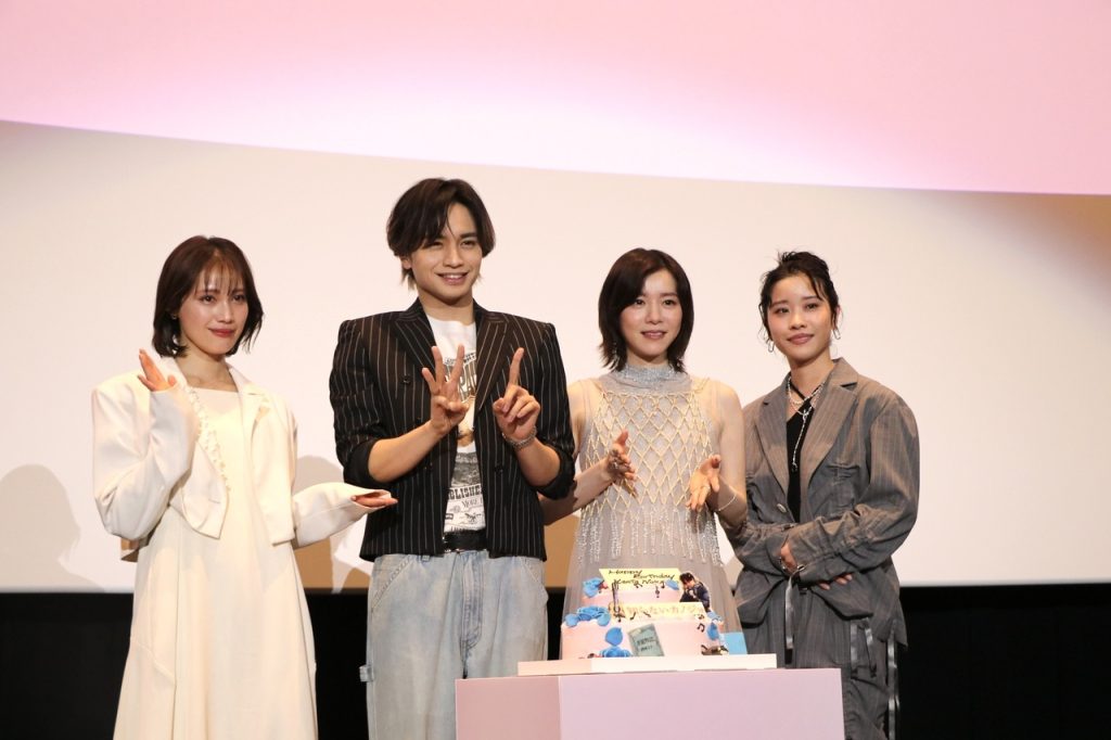 本作の大ヒットのお祝いとともに、イベント翌日が中島健人さんの31歳の誕生日ということで、バースデーサプライズも実施されました!ステージ上で突然、バースデーケーキが登場すると、観客からは大きな拍手が。「最高の誕生日プレゼントです! 皆さん、本当にありがとうございます!」と感激のコメントを残しました。キャスト陣からも温かい祝福の言葉が贈られ、終始和やかなムードに包まれた舞台挨拶となりました。