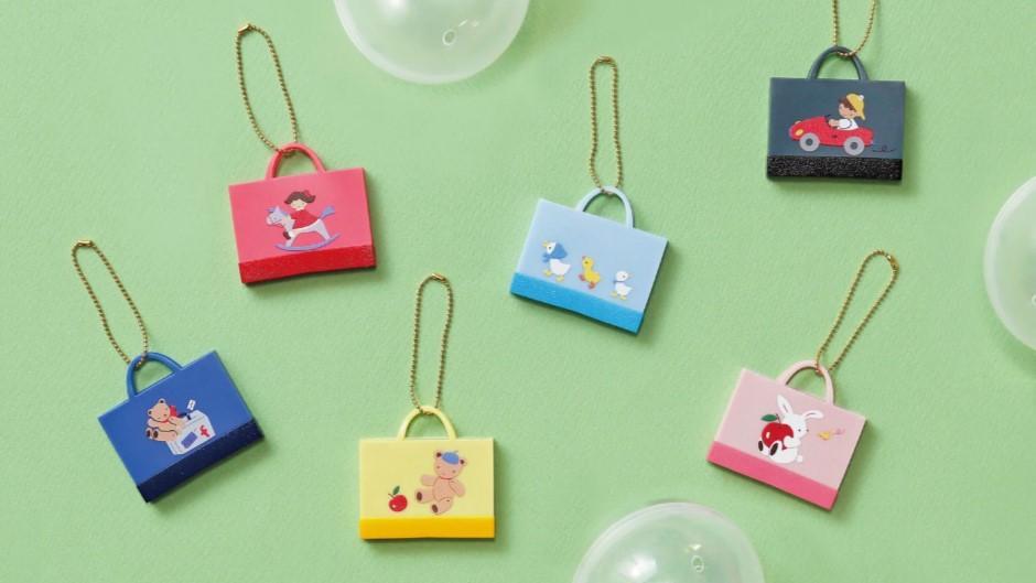 ミニチュアのキーホルダーとして手に入るのは、ファミリアで大人気の「デニムバッグ」。やわらかいタッチで描かれた子どもたちや動物のイラストに、レトロな色の組み合わせなど、デニムバッグの魅力が手のひらサイズに凝縮されたような、ときめき溢れるグッズです。