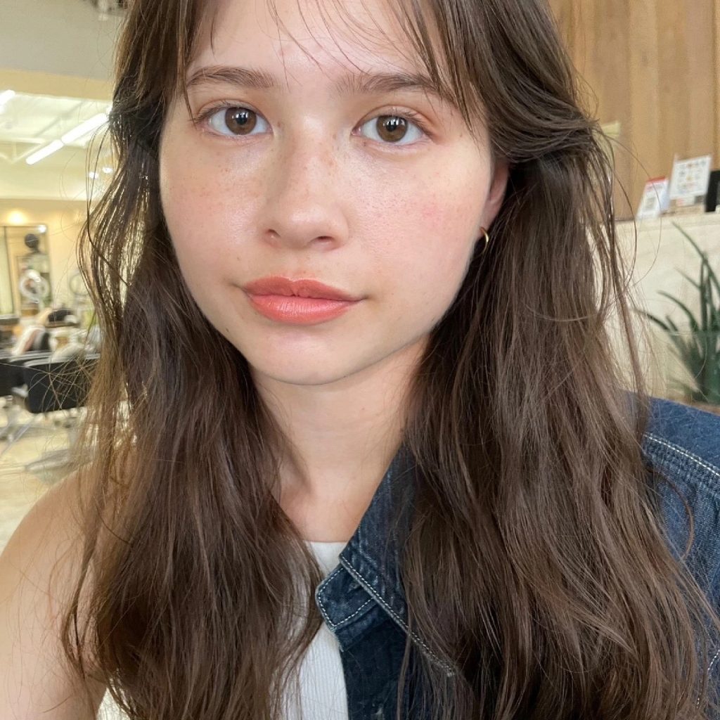 波打つような柔らかなウェーブと抜け感のある前髪がポイントのロングスタイル。前髪はセンターで分けても、中央部分を少し下ろしても可愛い2wayバングに。気分に合わせて雰囲気を変えられる多面性が魅力です。ウェット感のあるオイルを使用することで、カジュアルさの中にほどよいツヤと色気をプラス。カラーは髪の柔らかさを引き立てるオリーブベージュをセレクトして、透明感たっぷりの仕上がりに。