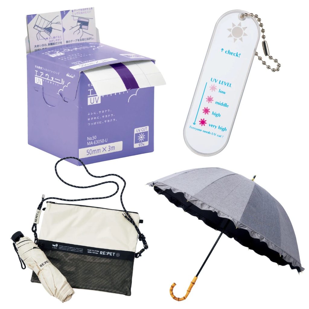定番の日傘、紫外線カットシールからUVチェッカーまで持っていると便利なお助けグッズ。