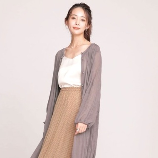 軽やかなチュール素材が涼しげで、夏のレイヤードスタイルにもぴったり。カジュアルなデニムと合わせて甘さを程よく引き算した着こなしもおすすめです。