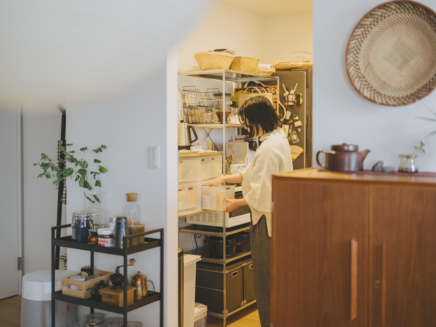 毎日使わないものは中身が把握できるように隠しつつ、毎日使うものは取り出しやすい収納も大切にされていたkinoさん。