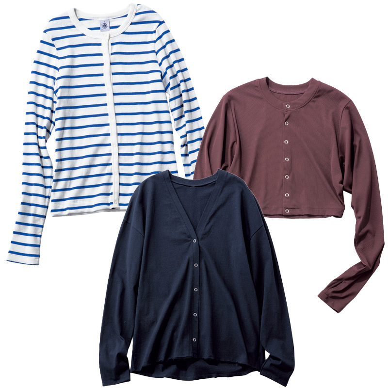 スナップカーディガンを一枚で着る、それだけでコーデが新鮮に!簡単にフレンチカジュアルを楽しめる品のいい甘さもこの春の気分です。ロンT感覚で着れるカーディガンをご紹介します。