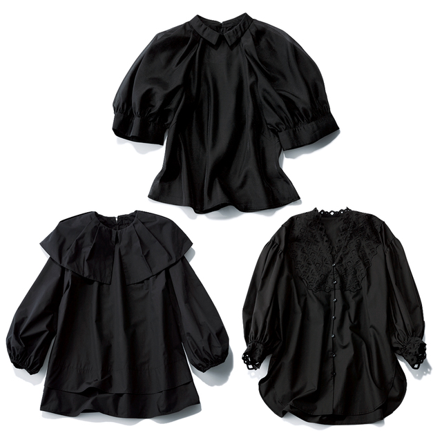 2本目は定番より一歩華やかな“技あり黒パン”で気になる箇所をカモフラ!肌見せトップス合わせも黒パンの安心感にのっかれば挑戦しやすい。