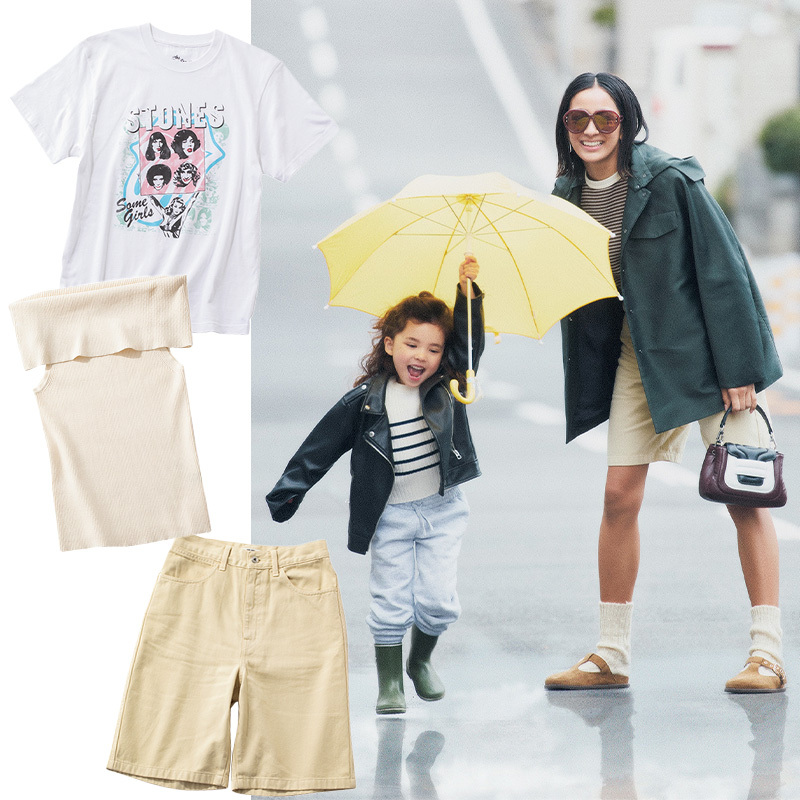 旬なハーフパンツは親しみやすいモード感に定評がある「Uniqlo U」に頼って、雨の日こそ取り入れたい!生活感が出やすい雨の日アウターも目新しく仕上げて。涼しく汚れる心配もなく、長い道のりにも大らかに寄り添えます。