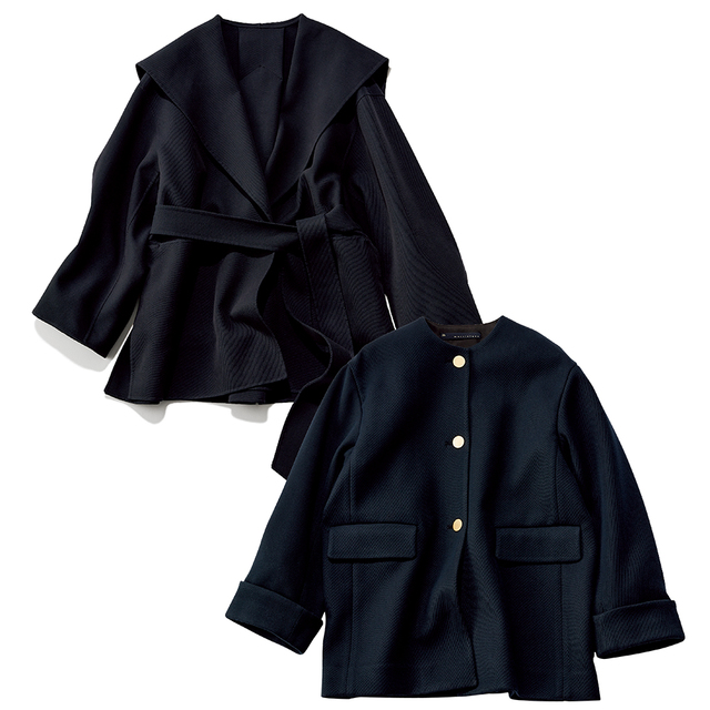 ここ1〜2年で定番化してきた衿付きニットは、立体的なステッチやリブ編み生地で更新感を。学校や仕事場で使える紺色ニットはお行儀良く見えるから、学校行事で数年着ることを見越して投資する価値あり。あえて同系色のボトムスと合わせたワントーンカラーが上級者。