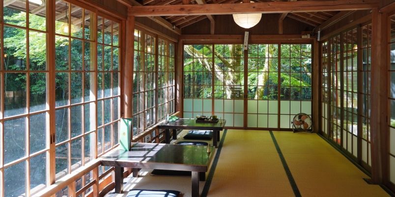 緑に囲まれた美しい清滝川のほとりにあるロケーションカフェ