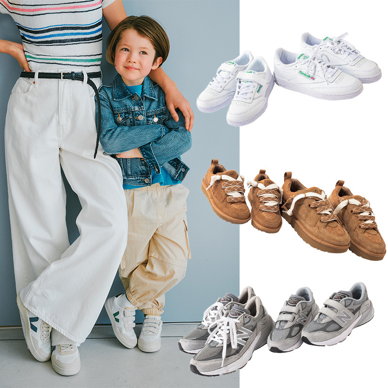 親子リンクコーデがしたいけれど気恥ずかしい…というママにオススメしたいのがお揃いのスニーカー。足元ならやりすぎ感もなく性別も問わず、簡単にチーム感がだせて◎。リッチに見えるものを厳選しました!