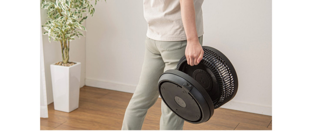 高さは3段階で調整でき、さまざまなシーンにフィット。寝室や脱衣所といったスポット利用はもちろん、リモートワーク中のデスク横や、キャンプなどのアウトドアでも活躍します。さらに、真上に風を送ることもできるので、室内干しの洗濯物に風を当てたいときにもぴったりです。