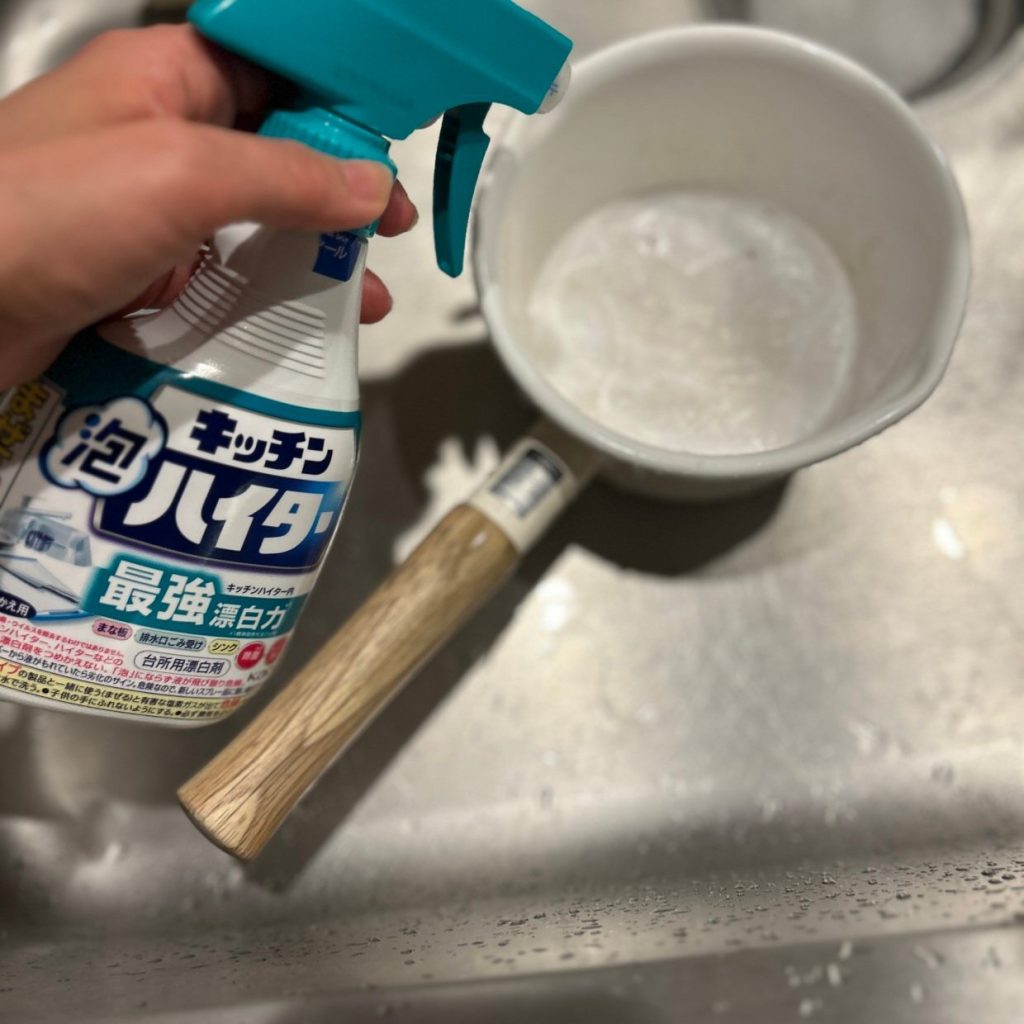 食材の色移りや雑菌の温床になりやすいまな板も、泡ハイターを使えばしっかり除菌&白さをキープ。週に1回のルーティンにすると衛生的です。