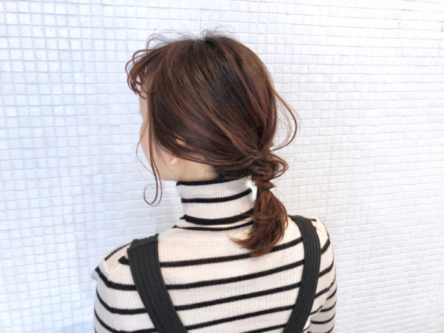 ペタンコシルエットにならないよう、トップの髪は根元から上へ引き上げるように伸ばすのがポイント。トップがふんわりと立ち上がり、丸みのある美しいシルエットに。