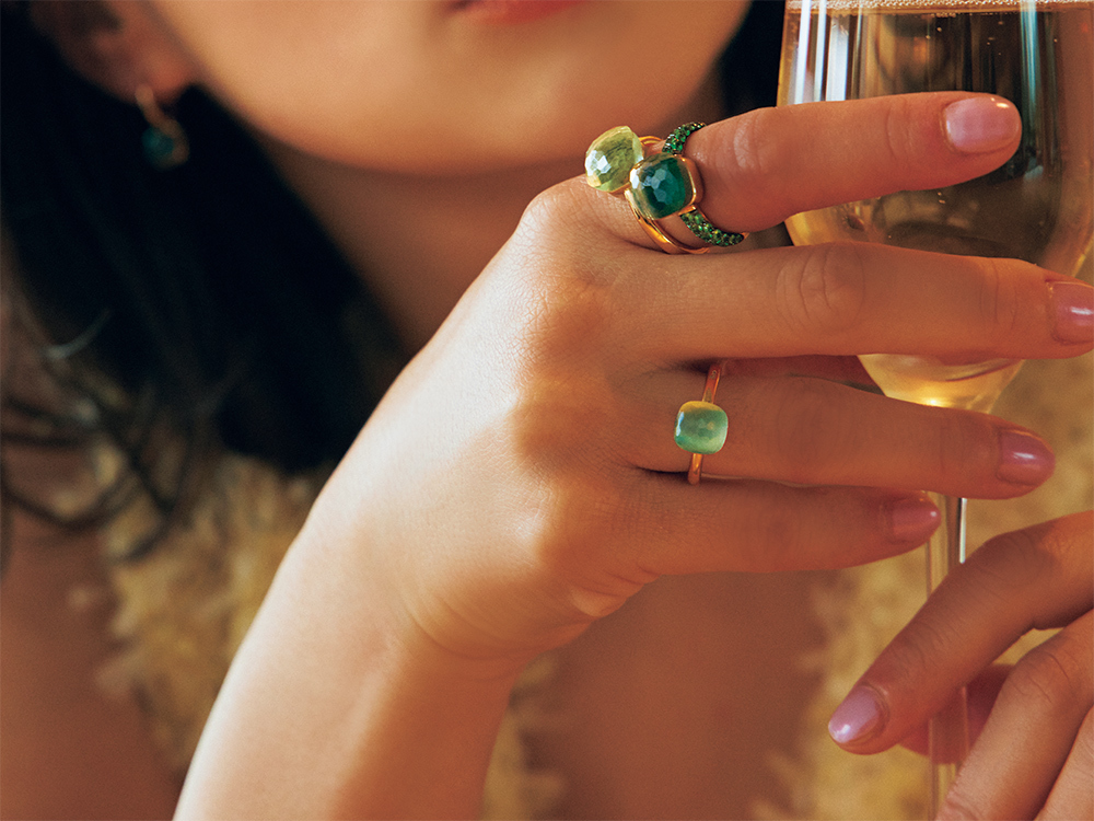 ストーンが本来持つ美しさを最大限に際立たせるようあえてシームレスにデザインされた〝ポメラート〟のアイコニックな「ヌード」コレクション。「好きな色って子どもの頃から変わらない」そんなローサさんの言葉通り、多彩なパレットから自分らしさが宿った生涯の相棒をチョイスして。