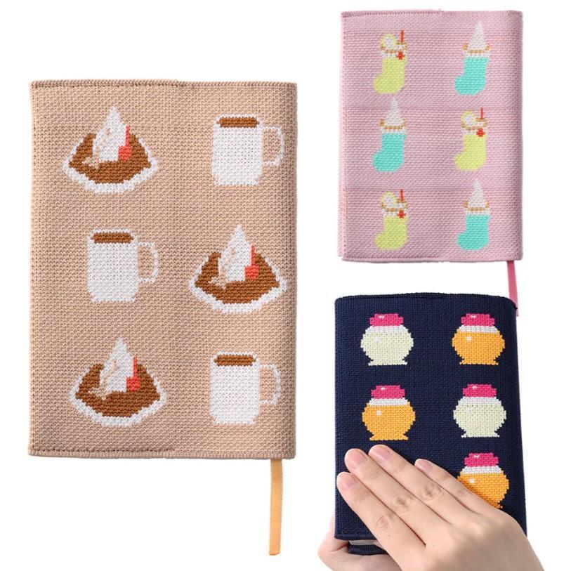 ペンケースと同様のニット生地で作られたブックカバー。代表的なドリンクやフードメニューが等間隔で描かれたデザインは、カバンに入れ持ち運ぶだけでも気分がアップしそう。コメダ珈琲店での読書のお供にも最適です。