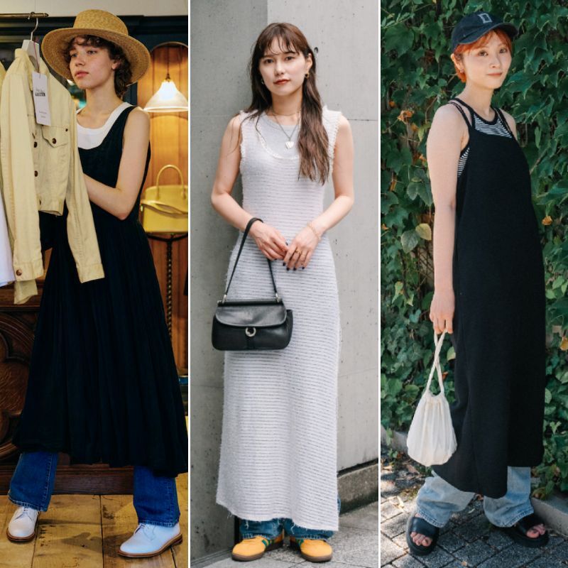 ノースリーブのワンピースは、デニムをINするのが今の気分。絶妙なバランスのコーディネートを楽しんでみませんか?お手本コーディネートを参考に、お気に入りのワンピースやデニムでチャレンジしてみて。