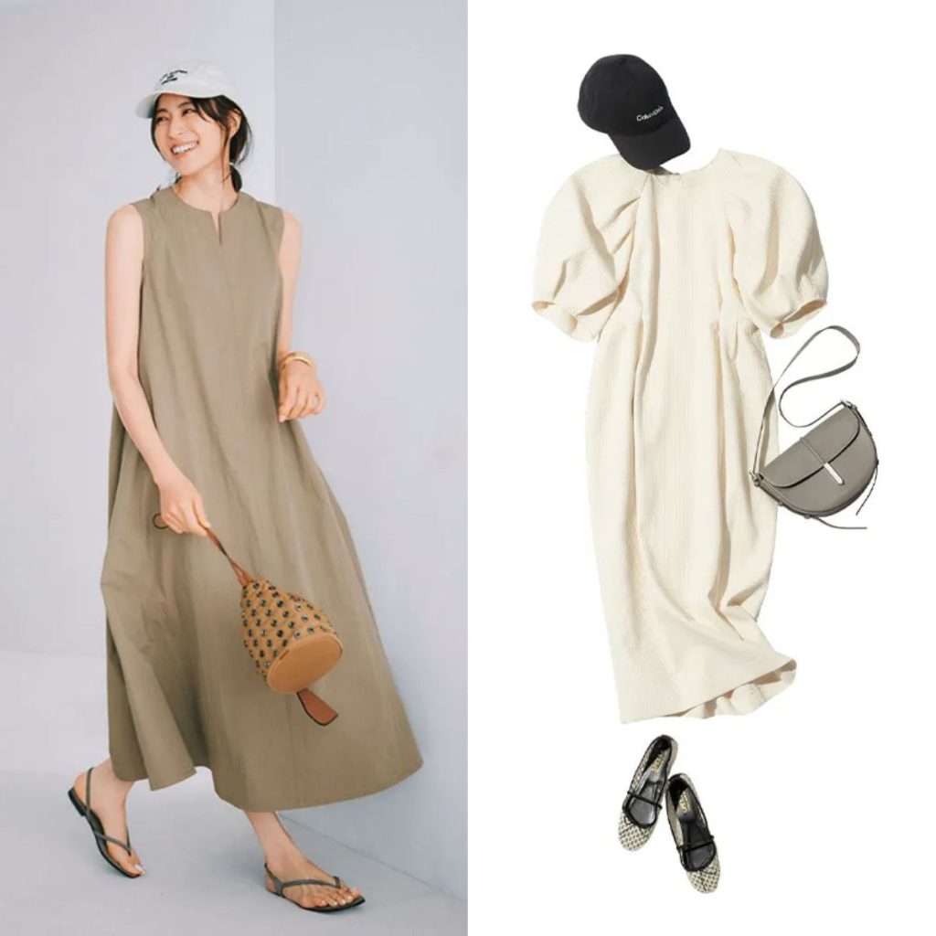 キレイめママの間では 白系キャップ×ワンピ合わせが人気