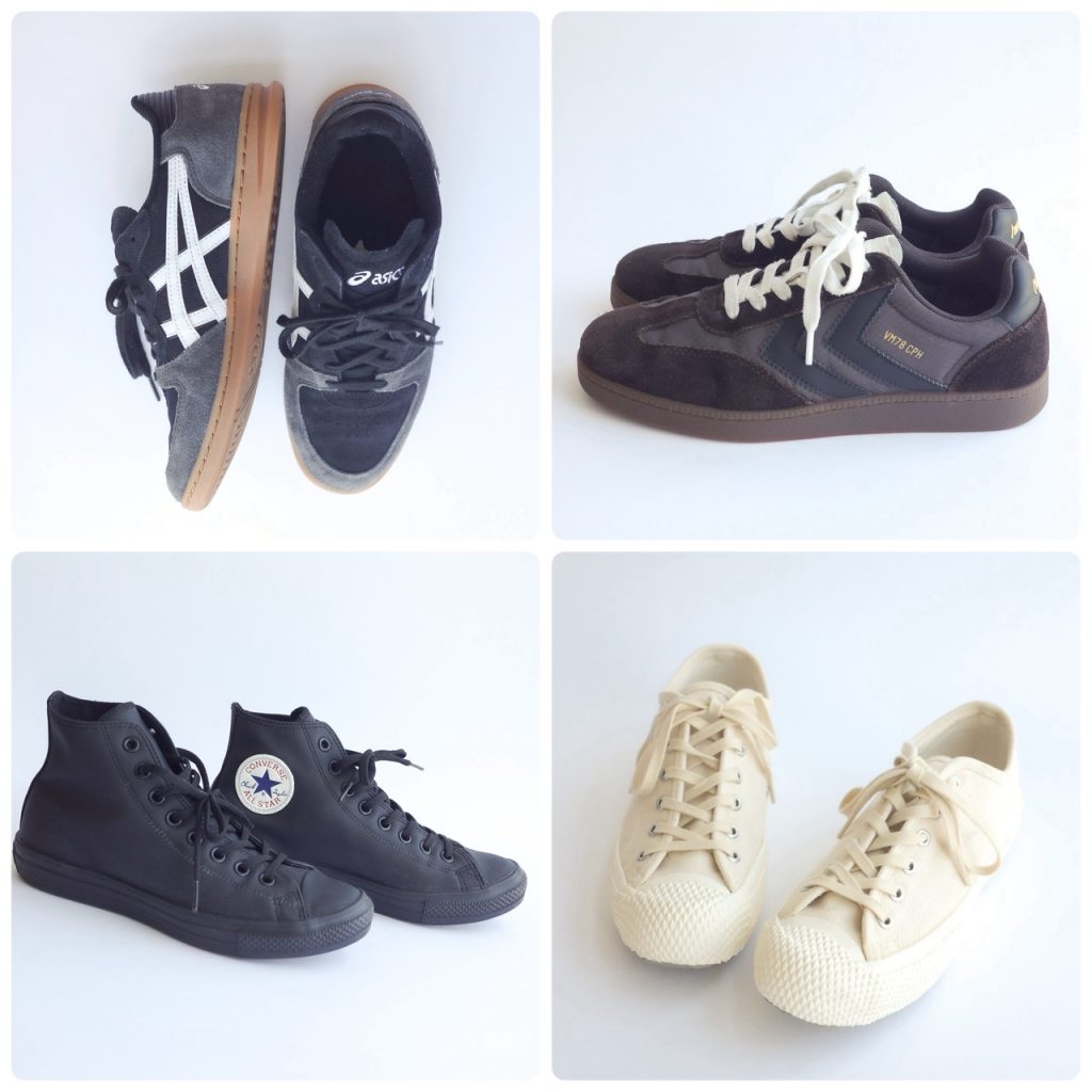 ファッションやカルチャーなど、様々な分野でレトロなアイテムがトレンドに。編集部の足元も、スニーカーはローテクが気分みたい。カラーも黒・白・ブラウンなどのベーシックカラーで、足元をすっきりまとめるスタイルが人気です!