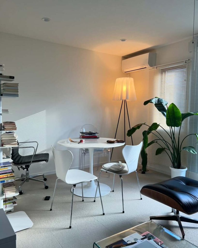「今後どういう好みになってもいいように、まずはベーシックなアイテムで揃えました。映画のセットのようなノイズのない空間にすることで、ものの置き方次第で楽しめるので気に入っています」