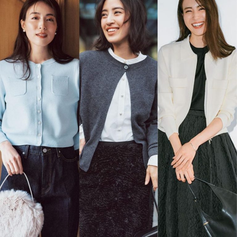 気温調節アイテムとしても、レイヤードアイテムとしても万能なカーディガン。そこに配色デザインが加われば、コーデのアクセントとしても働いてくれます。差し色をしなくてもカーデを羽織るだけでメリハリが生まれるため、時短コーデにも◎。程よいシアー感やコンパクトな着丈が、ダサ見え回避にも役立ってくれます。