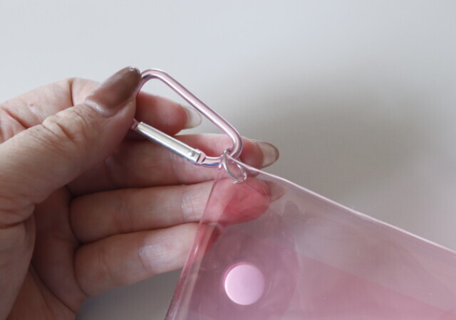 推しのぬい=ぬいぐるみを入れて持ち運べるポーチもあります。ファスナーが大きく開いて出し入れしやすいです。透明になっているので推しぬいの姿がよく見えて、フリルデザインがかわいいです。