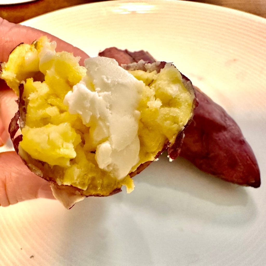 ホクホクのふかし芋ができました。筆者はバターを乗せましたが、そのまま食べてもおいしくいただけます。安納芋のようなねっとりしたさつまいもで作ってみるのもいいですね。