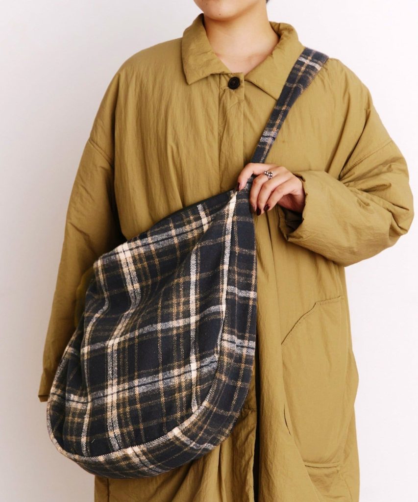 こちらもチェック柄が秋らしくてかわいいショルダーバッグ。ネイビー地にベージュやブラウン系のチェック柄を合わせたデザインで、コーデのさりげないアクセントに。カジュアルな着こなしにマッチします。