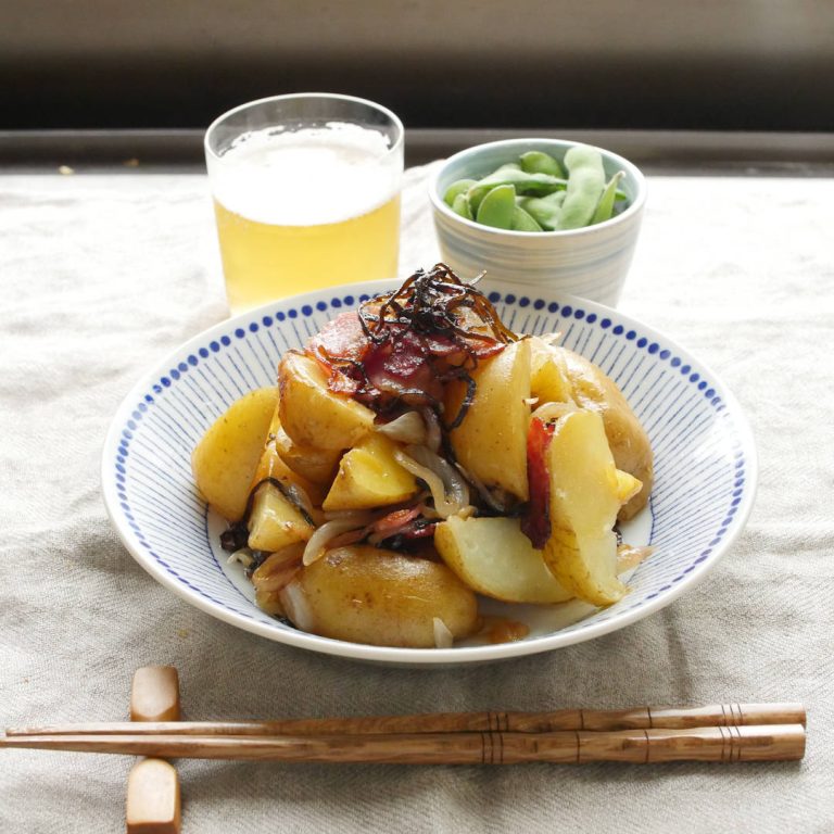 キョロキョロとしたおばけのような表情がかわいいミートボール。フライパンでこねて、そのまま焼いて煮込むので、洗い物が少なく済みます。なかにチーズが入っているのもうれしいポイント。目はスライスチーズと生の黒コショウで作っています。