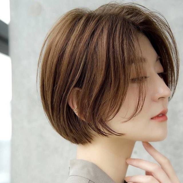 胸上ラインのミディアムレイヤーがベース。まとまりをキープするために適度な重さを残し、表面にレイヤーを入れて動きをつけることで、Aラインのシルエットに。毛先にボリュームがあるため、視覚効果で顔が小さく見えるのが高ポイント。