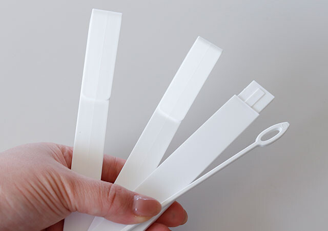 はじめにご紹介するのは『ディスプレイスタンド 角型ロング』。組み立ては板に足を差し込むだけなので、とても簡単です。サイズは縦270mm×横90mm×高さ70mm。クリアカラーなのでどんなお部屋にも合わせやすく、置いたときに圧迫感がないのがGOODです。