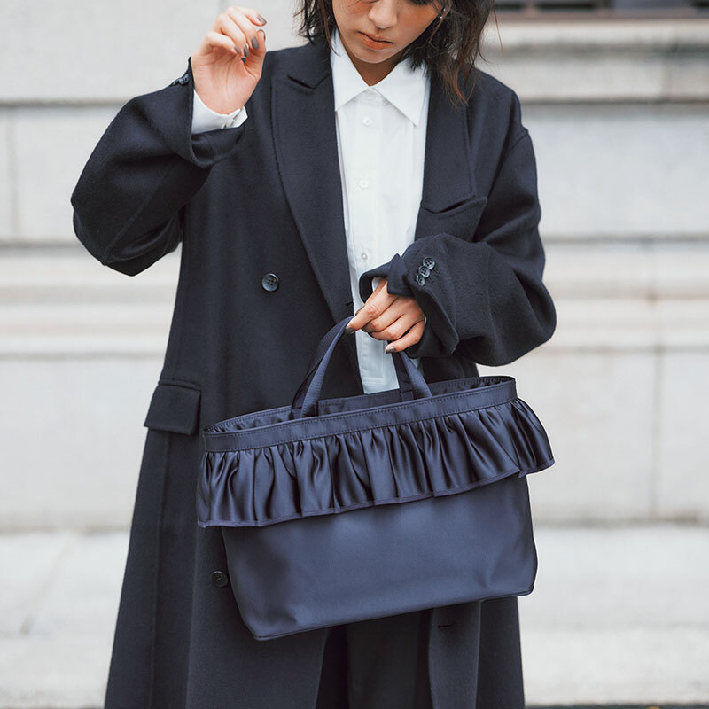 通勤や学校行事など、荷物が多い日もきちんと見せたい――そんなママたちから支持を集めている【セツコサジテール】のバッグが、待望の再登場! A4がすっきり収まるサイズ感と、上品なネイビーカラーが魅力。シンプルながら存在感のあるデザインで、カジュアルにもきれいめにもマッチします。大人の毎日に寄り添う“名品バッグ”、完売前にぜひチェックを。