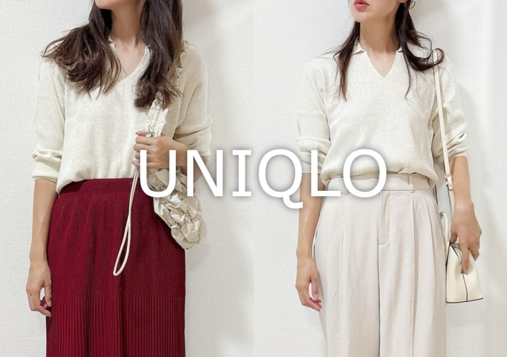 [映えトップス]ユニクロの首周りがすっきり見えるニットが華奢見えに最高!《着用レビュー》